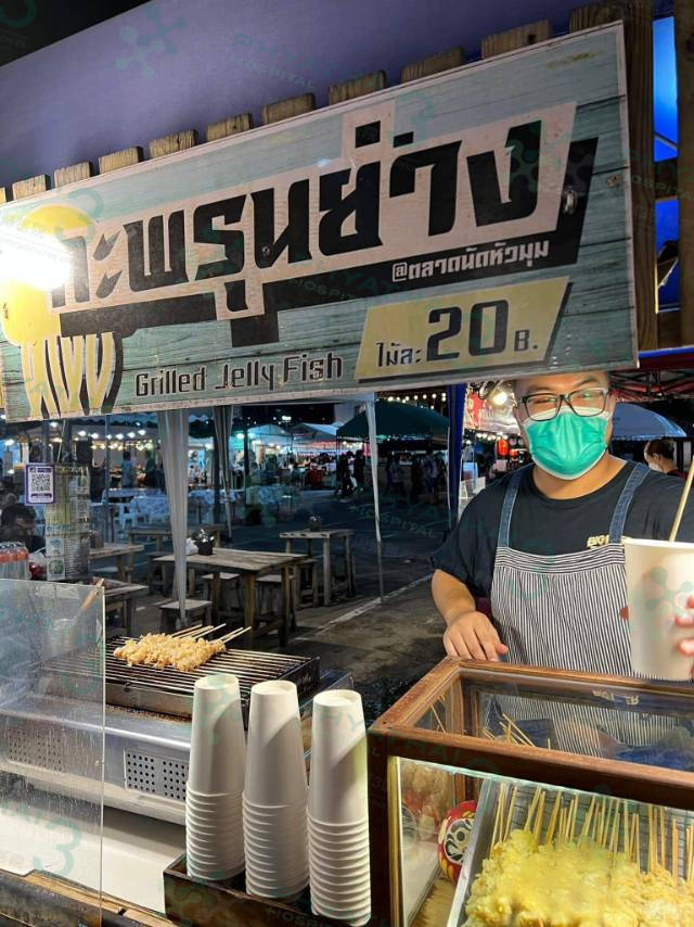 推荐给各位泰国试管姐妹们一个神奇美味的小吃烧烤水母,这个是在华马夜市,这一听到这个名字是不是会有一种疑惑的感觉,但其实它的口感和海蜇一样,脆脆的弹弹的口感很好,再配上老板自己调的蘸料真的又新奇又好吃的感觉姐妹们如果去了华马也是一定要去尝试一下哦